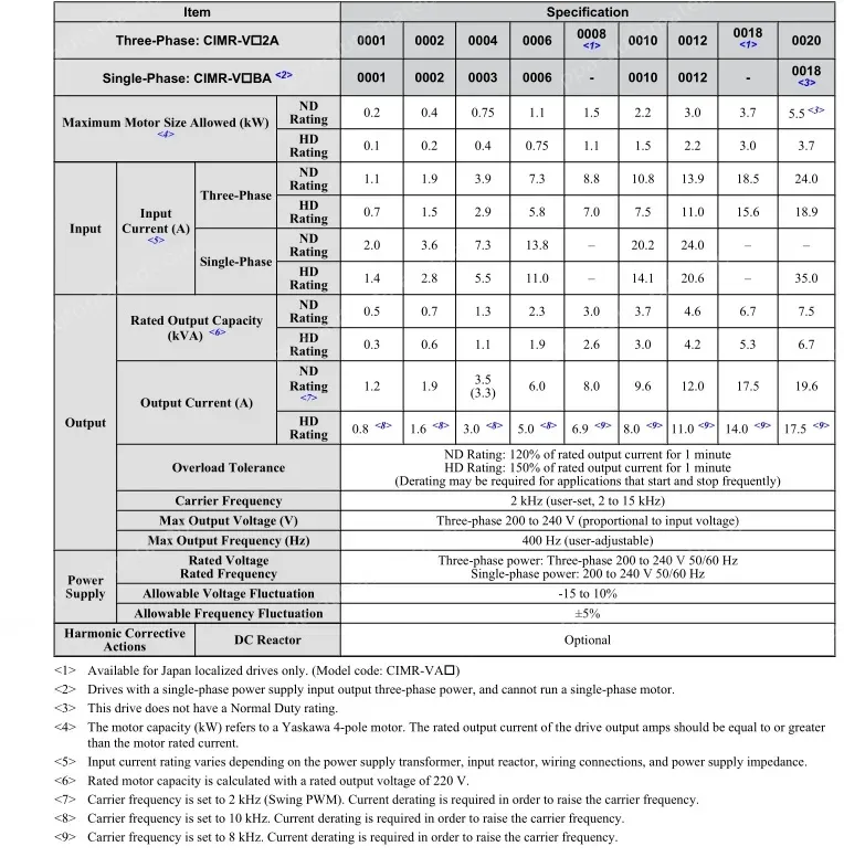 Max. Motor Capacity 3.7Kw;Rated Output Current 17.5A